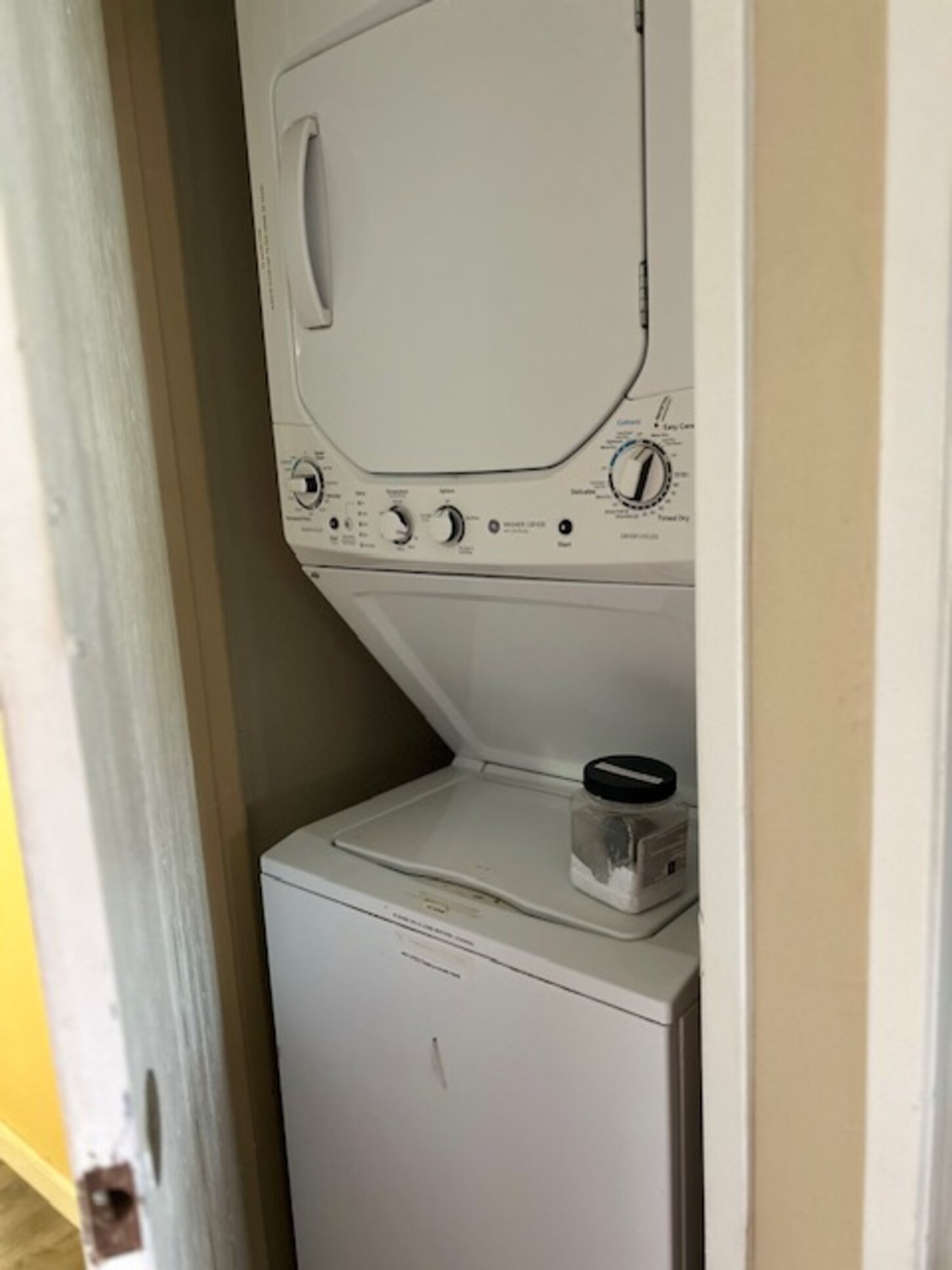 There is a washer and dryer in the un...