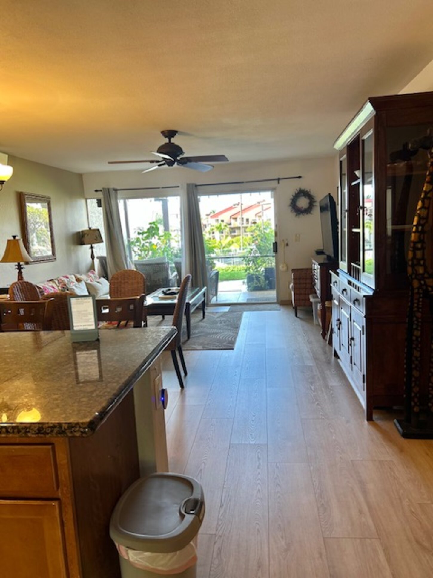 The granite topped kitchen is fully equipped to prepare your meals. Barbeques and pool are conveniently located right outside the condo.