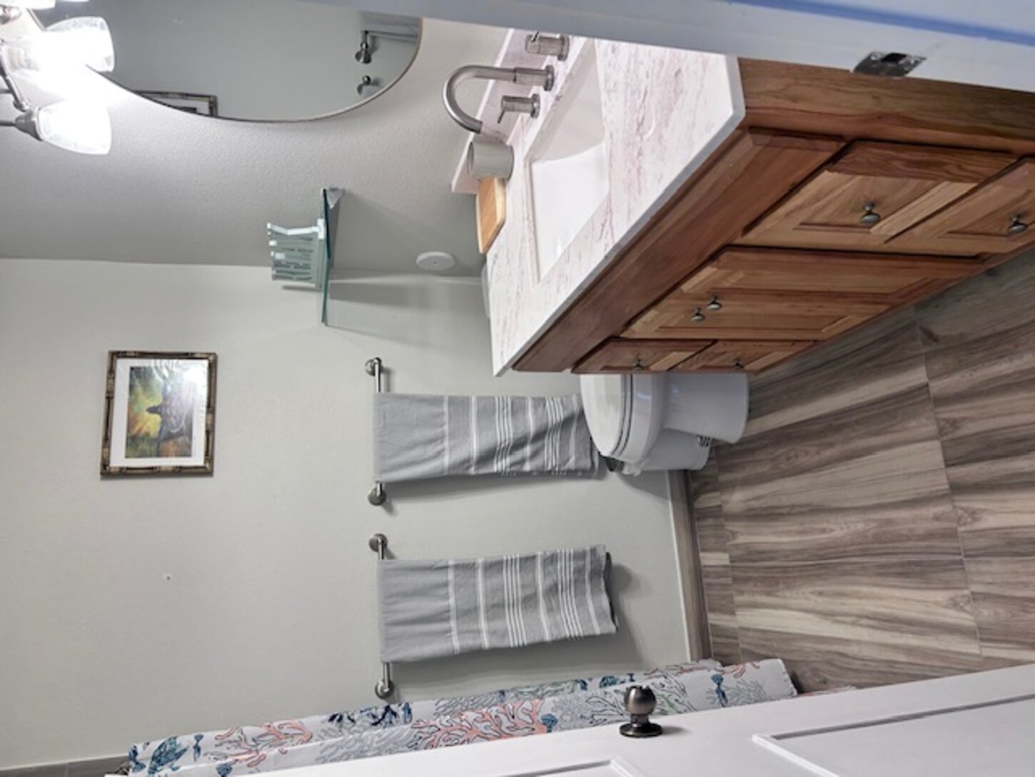 The bathroom has been remodeled with a walk in shower. The bedroom has a nice comfy king sized bed.